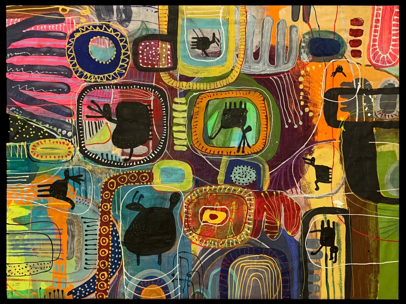 Il y a dans cette peinture une sagesse de l’excès : excès de couleur, d’énergie, d’invention. Et aussi une éthique de l’invisible : aucune figure reconnaissable, parce que ce qui cherche à se montrer ne peut être capturé par la forme. Comme les alebrijes —créatures hybrides, irréelles, délirantes— ces œuvres sont des fragments d’un monde qui n’existe pas dans la réalité, mais qui est profondément réel sur le plan émotionnel.