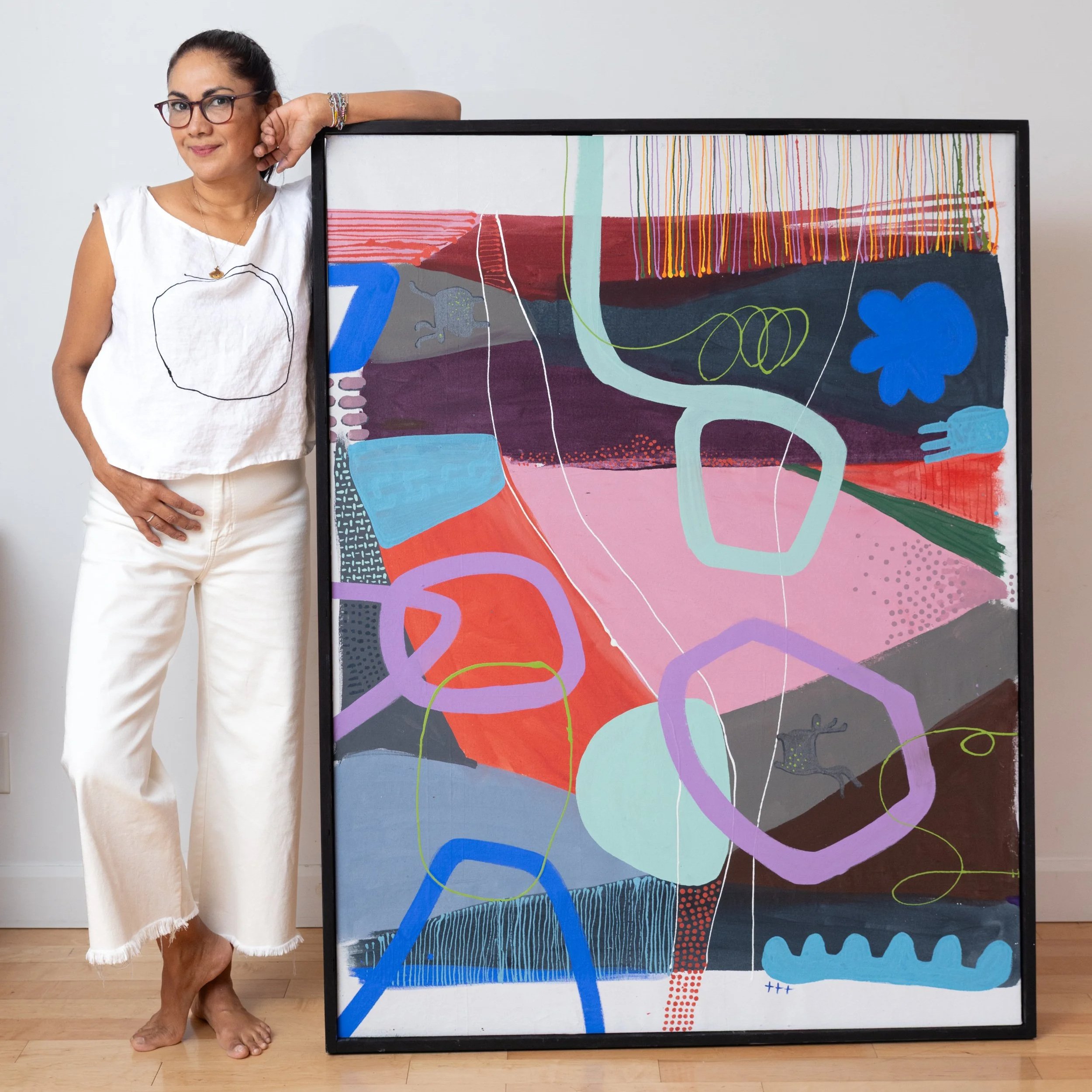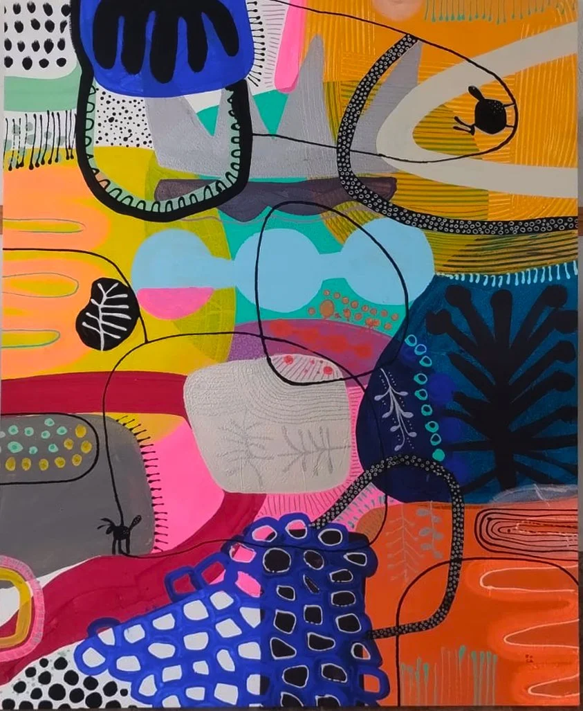 Dans ma série Alebrijes, j’explore un univers pictural où la couleur, la forme et le mouvement deviennent les véritables protagonistes. Inspirée par l’imaginaire libre et vibrant des alebrijes de la culture mexicaine, je n’en cherche pas la représentation figurative, mais plutôt l’énergie et l’esprit.